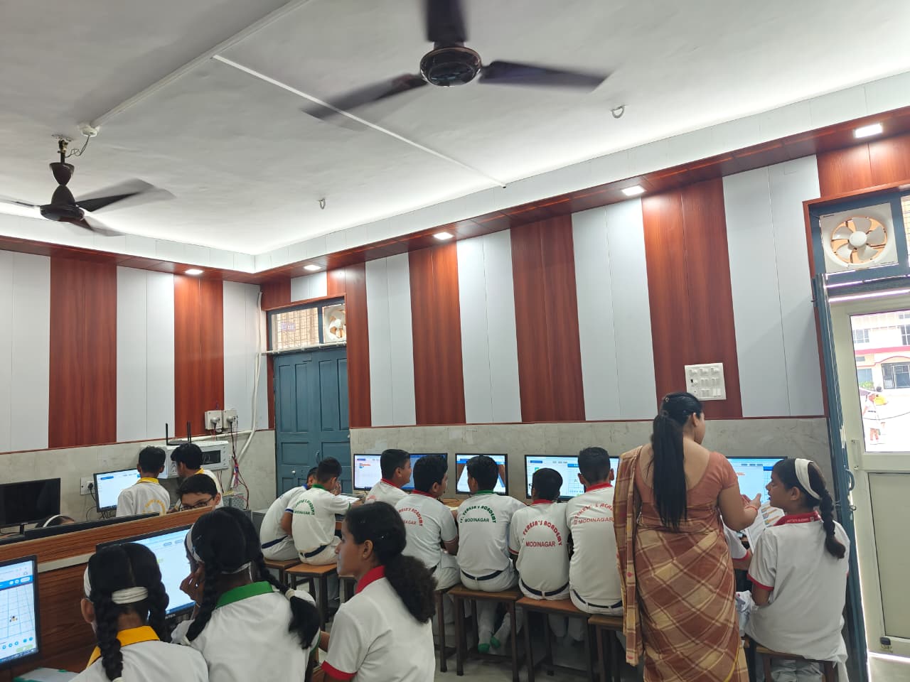 The Junior Computer Lab has modern computers and useful software. It helps students learn technology, improve digital skills, and gain practical knowledge through simple and creative activities.