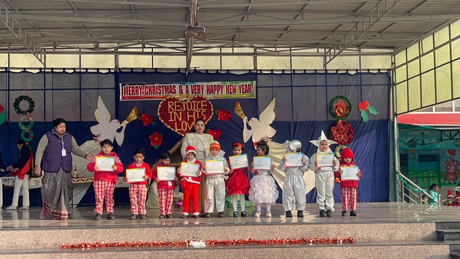 The school celebrated Christmas with vibrant decorations, cheerful performances, and a joyful exchange of gifts among students and teachers. The event brought warmth, laughter, and festive spirit to everyone present.