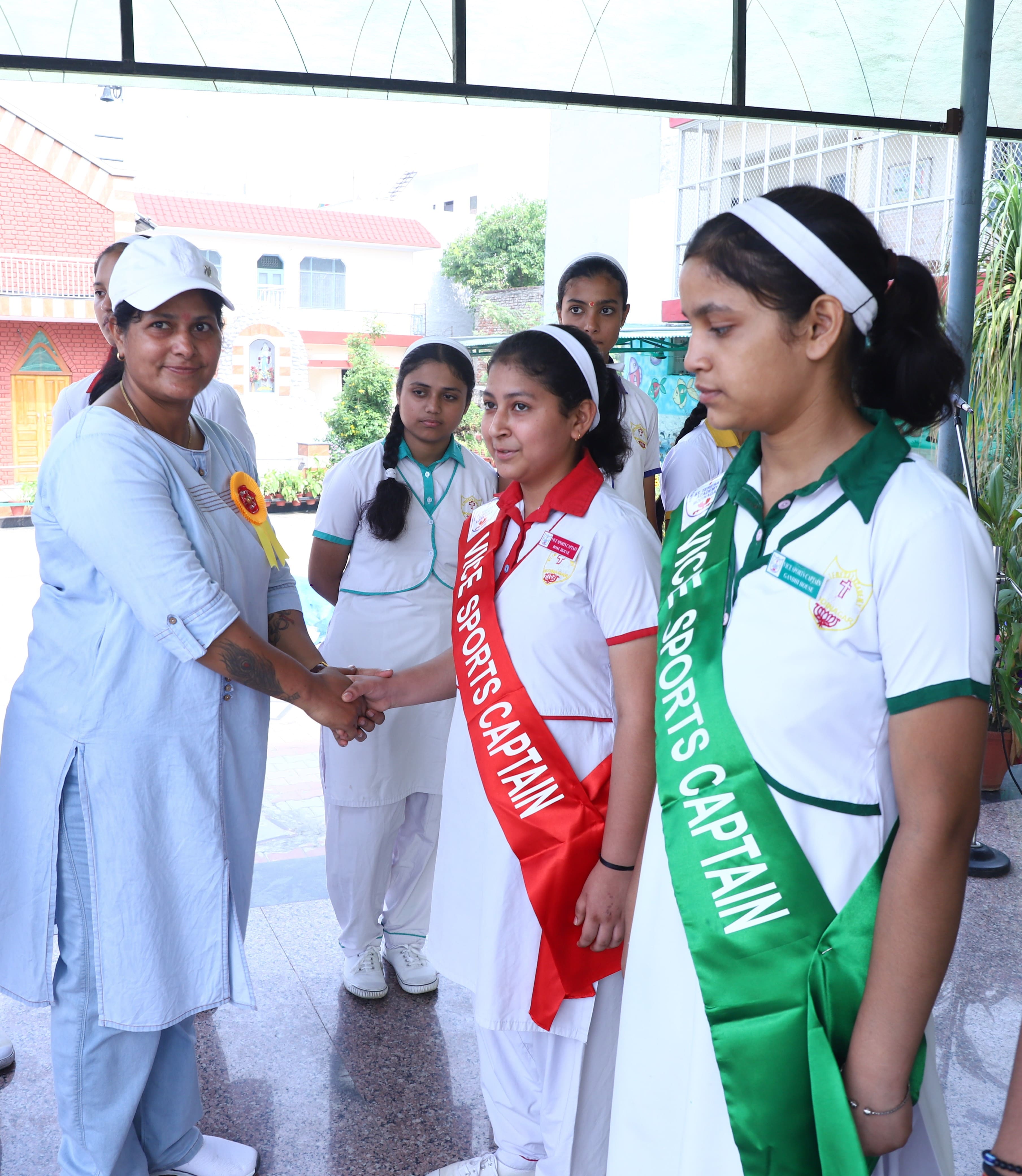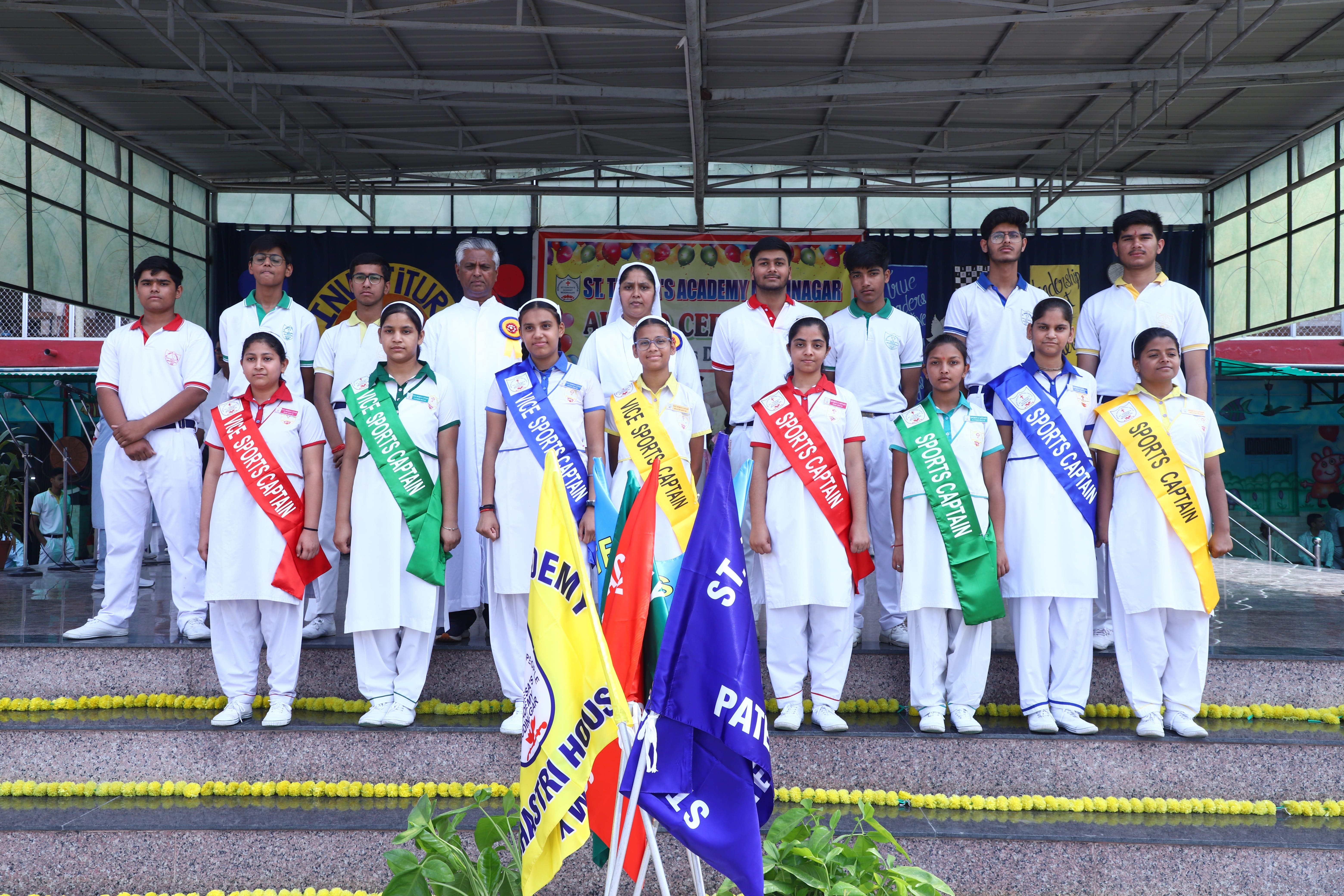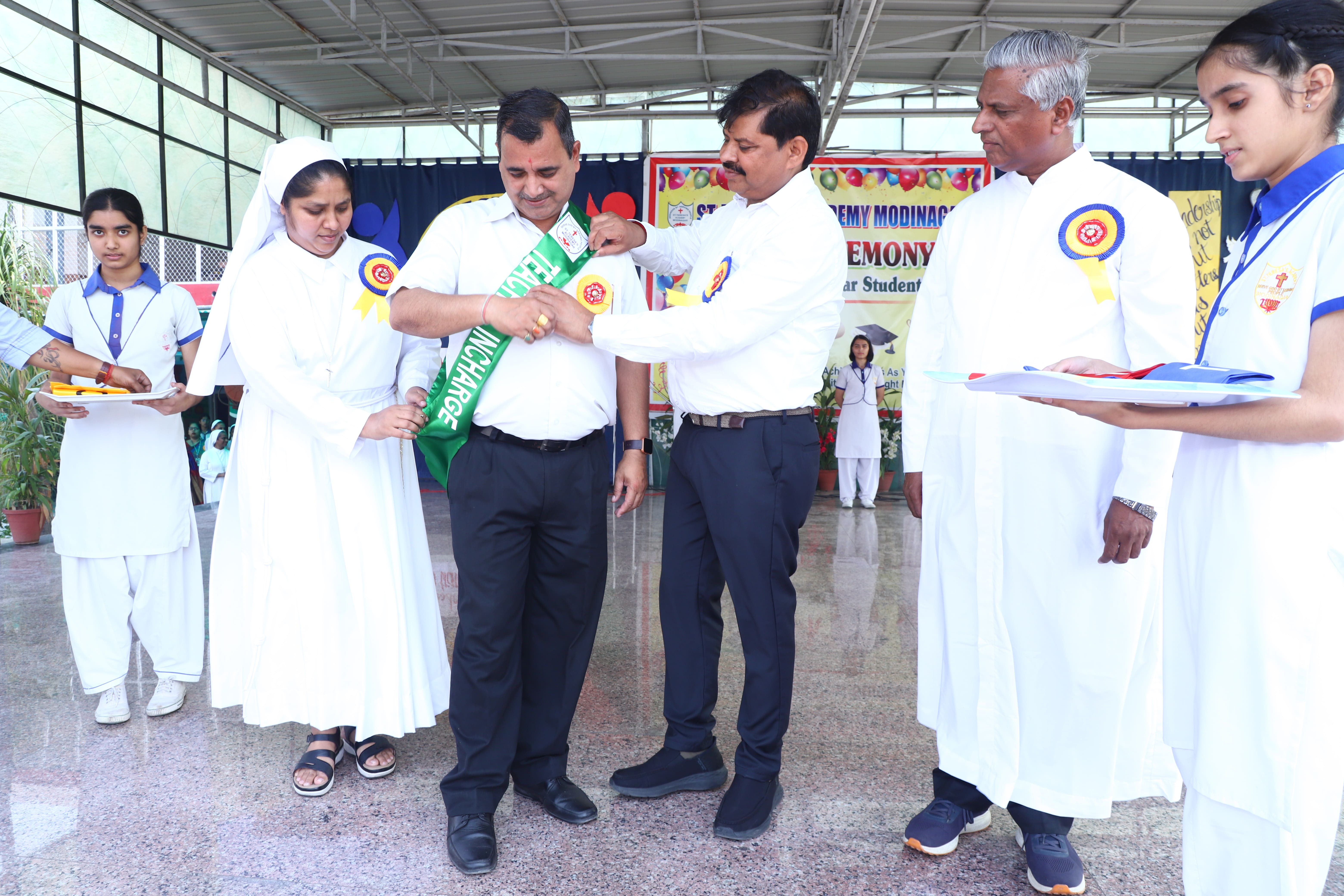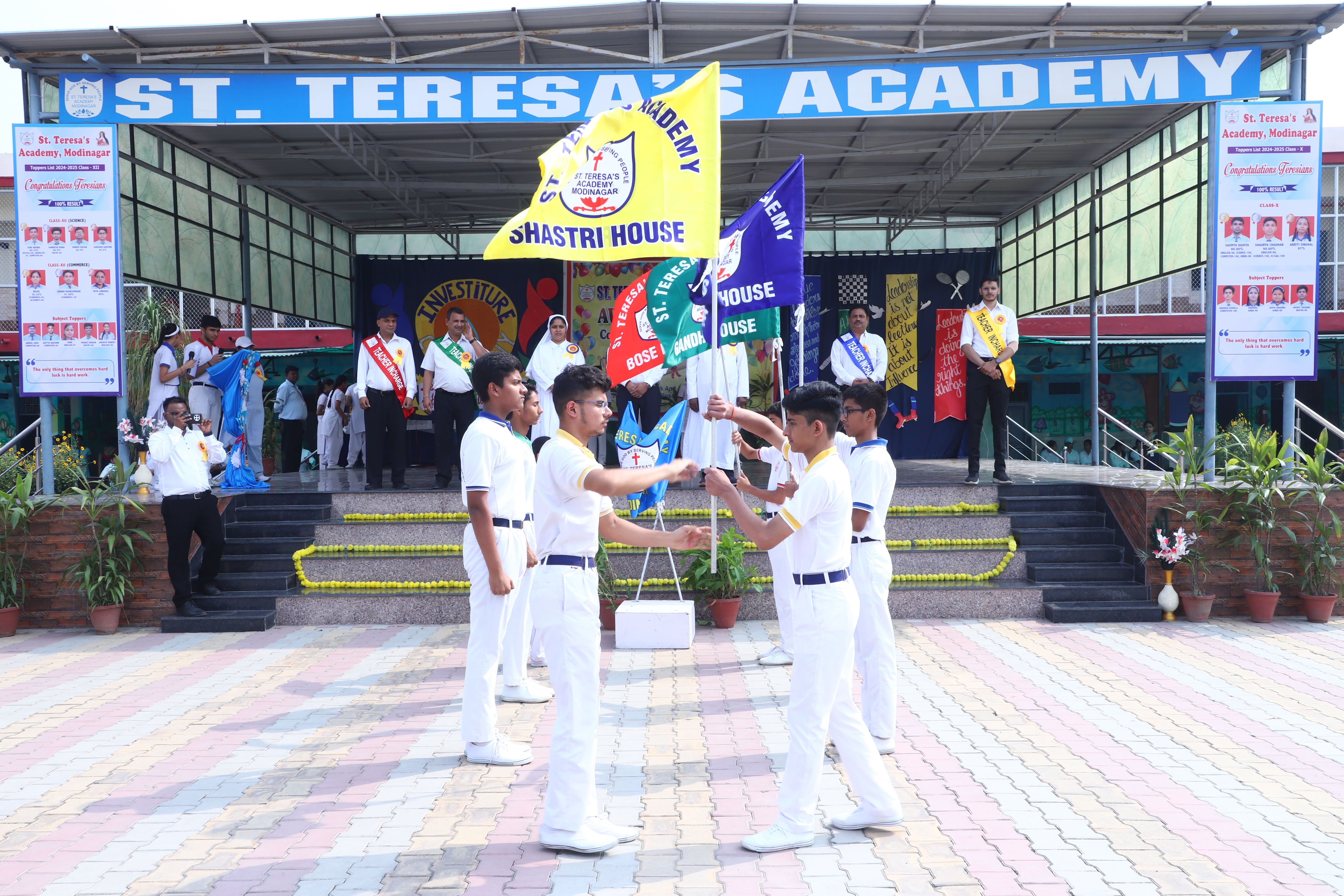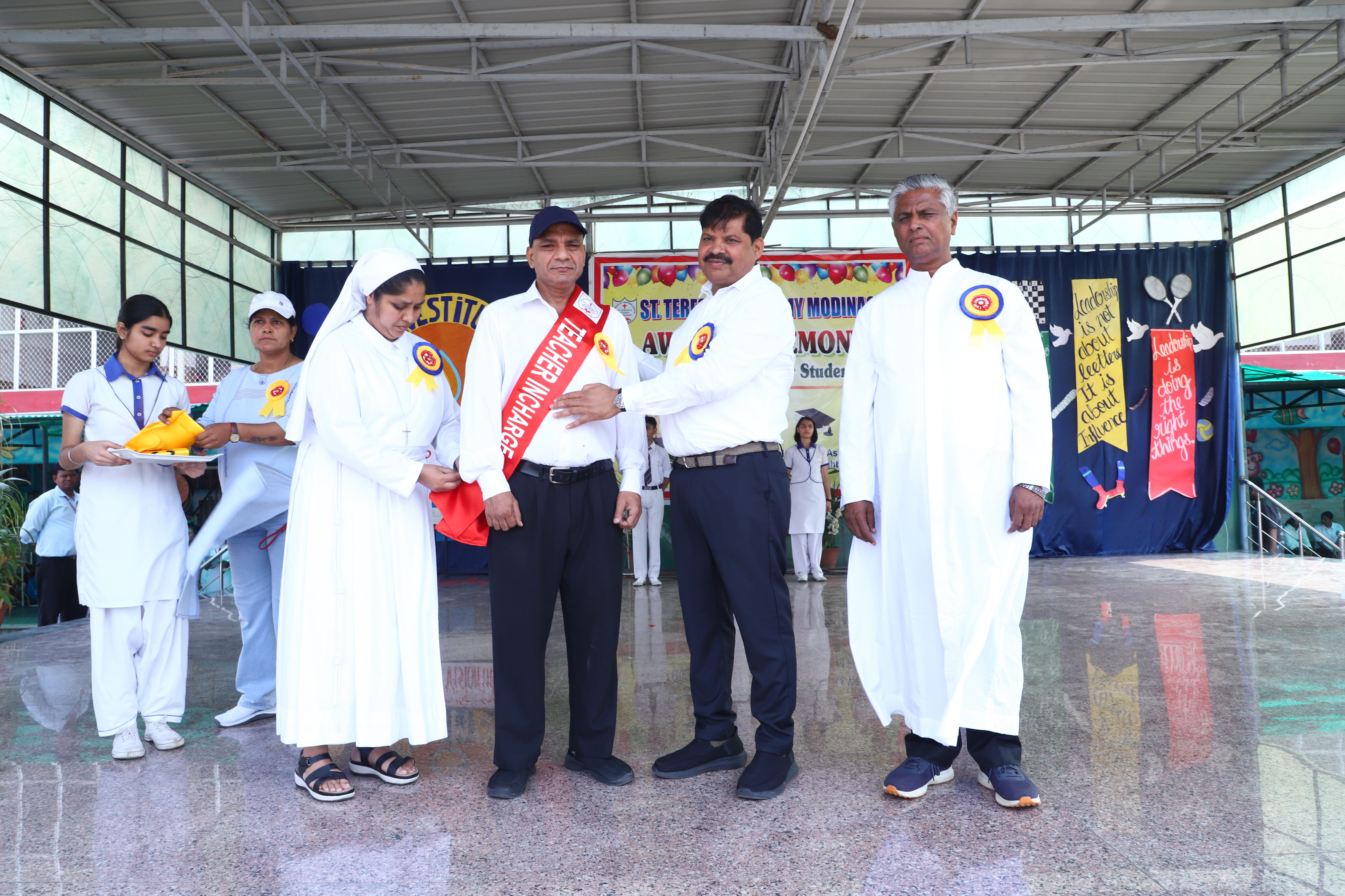 The Investiture Ceremony at St. Teresa's Academy, Modinagar is a prestigious event that marks the official induction of student leaders into their roles of responsibility and service. During the event, newly appointed leaders, including the Head Boy - Abhishek Sirohi, Head Girl - Divyanshi, Asst. Head Boy - Shaurya Dixit, Asst. Head Girl - Bhavya Nagpal, House Captains, and Prefects, receive their badges and sashes, signifying their readiness to lead with integrity and inspire their peers.