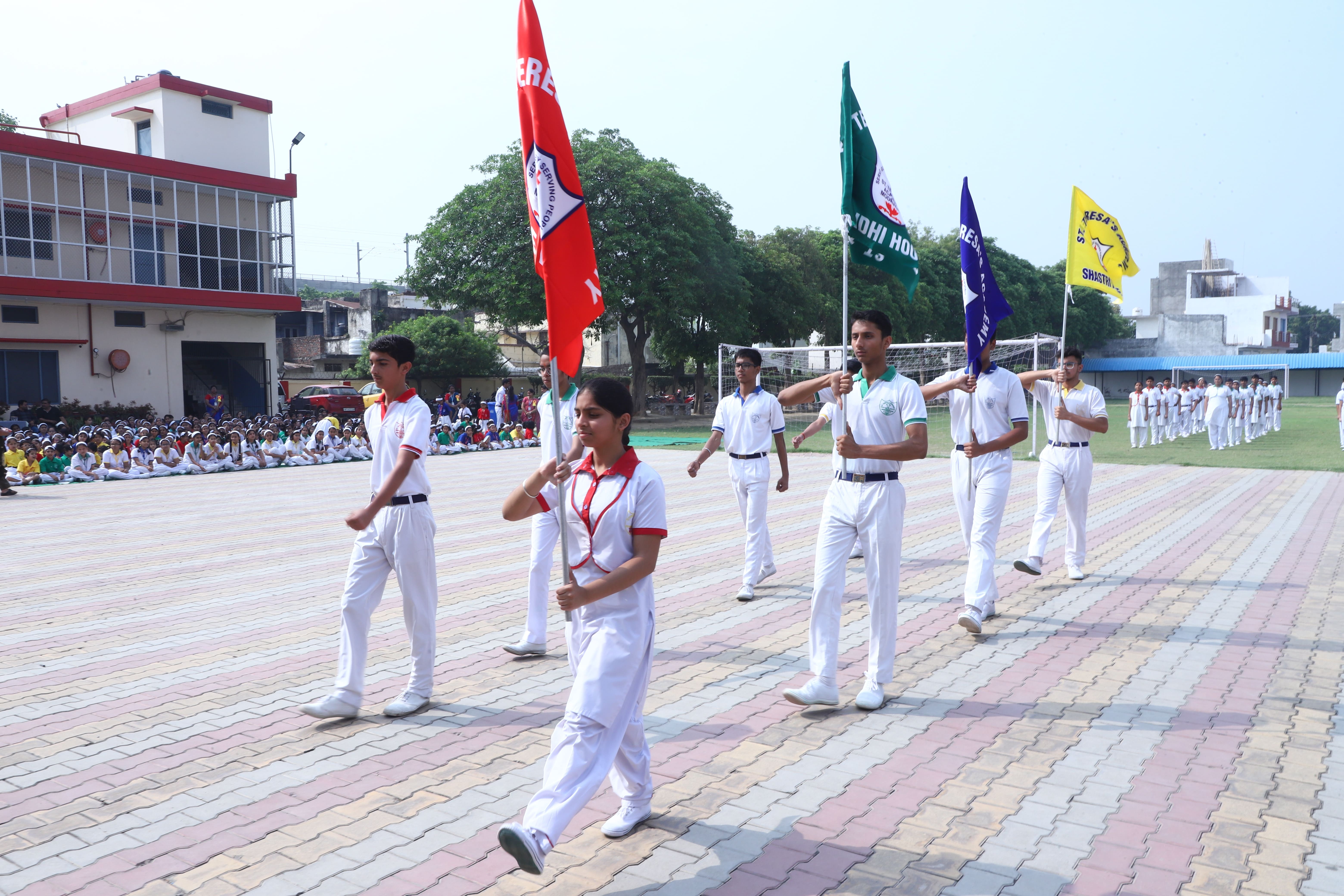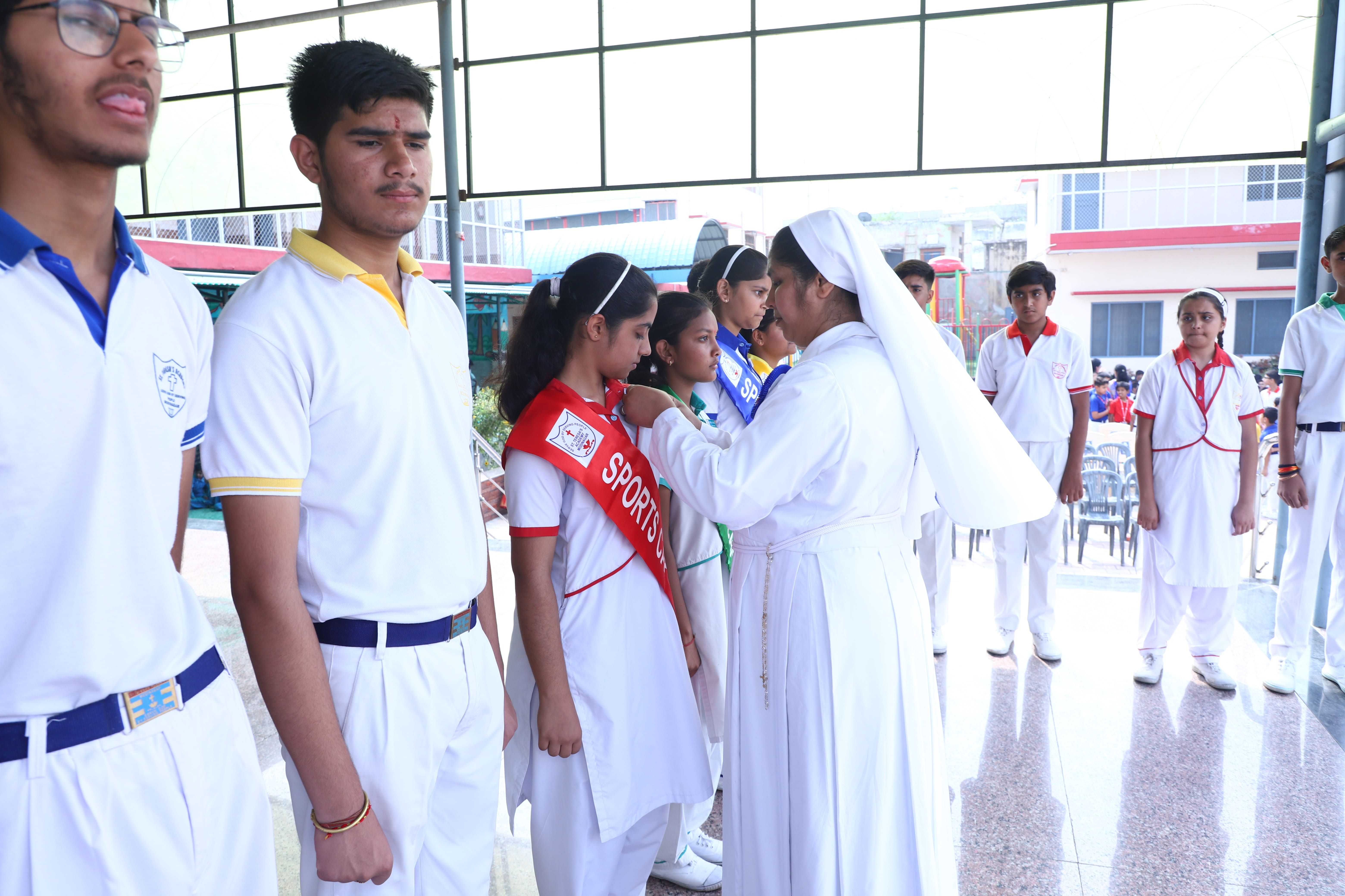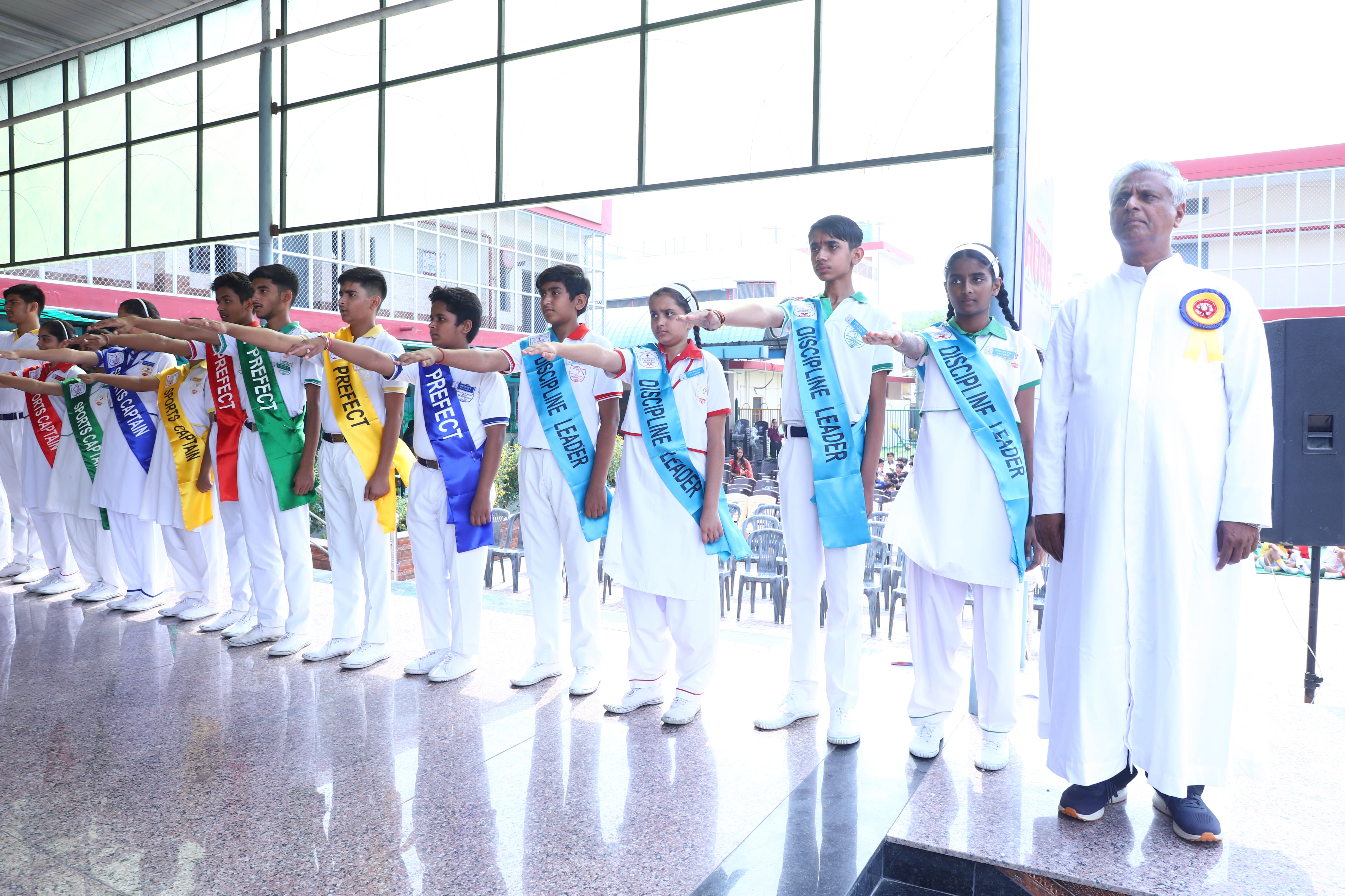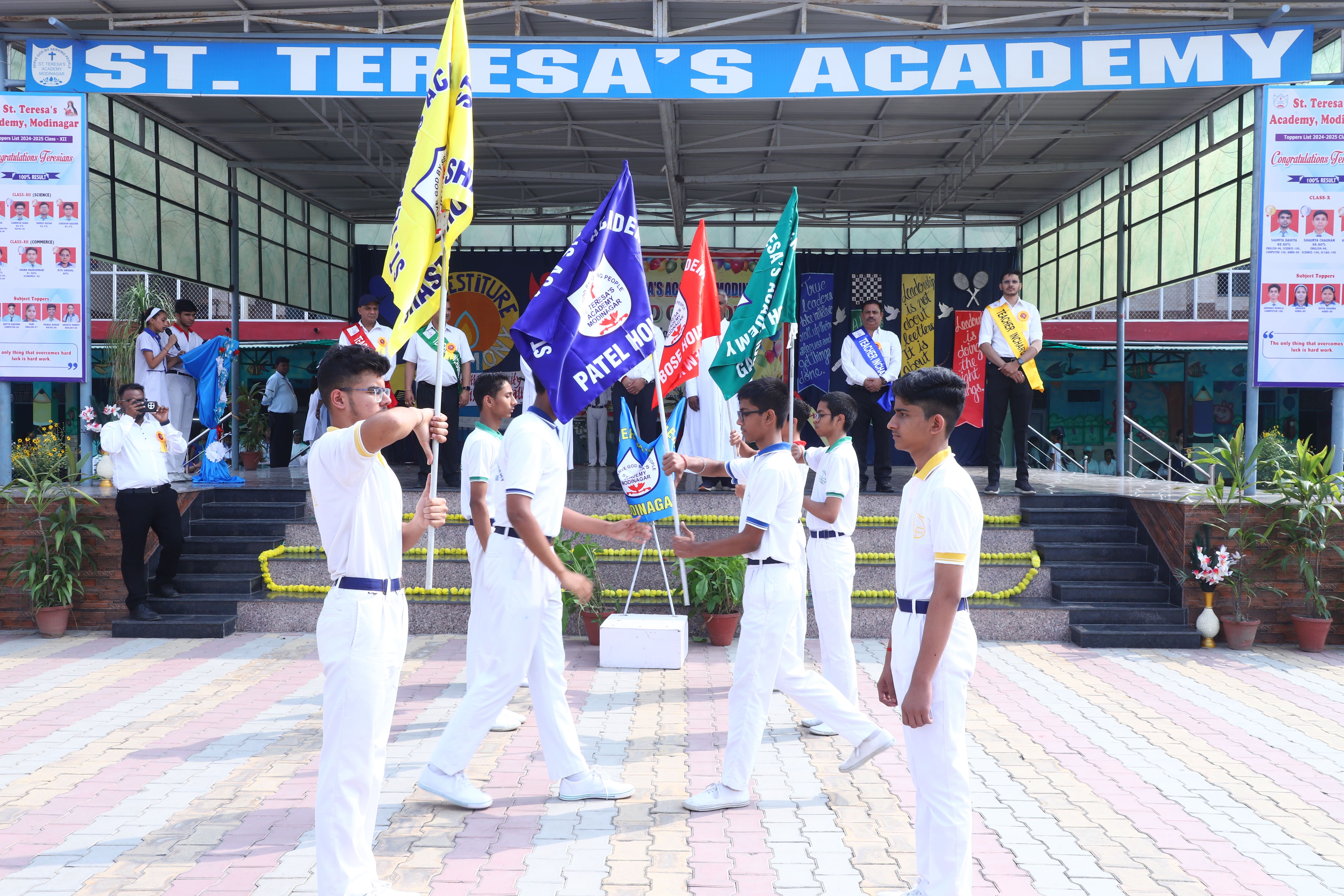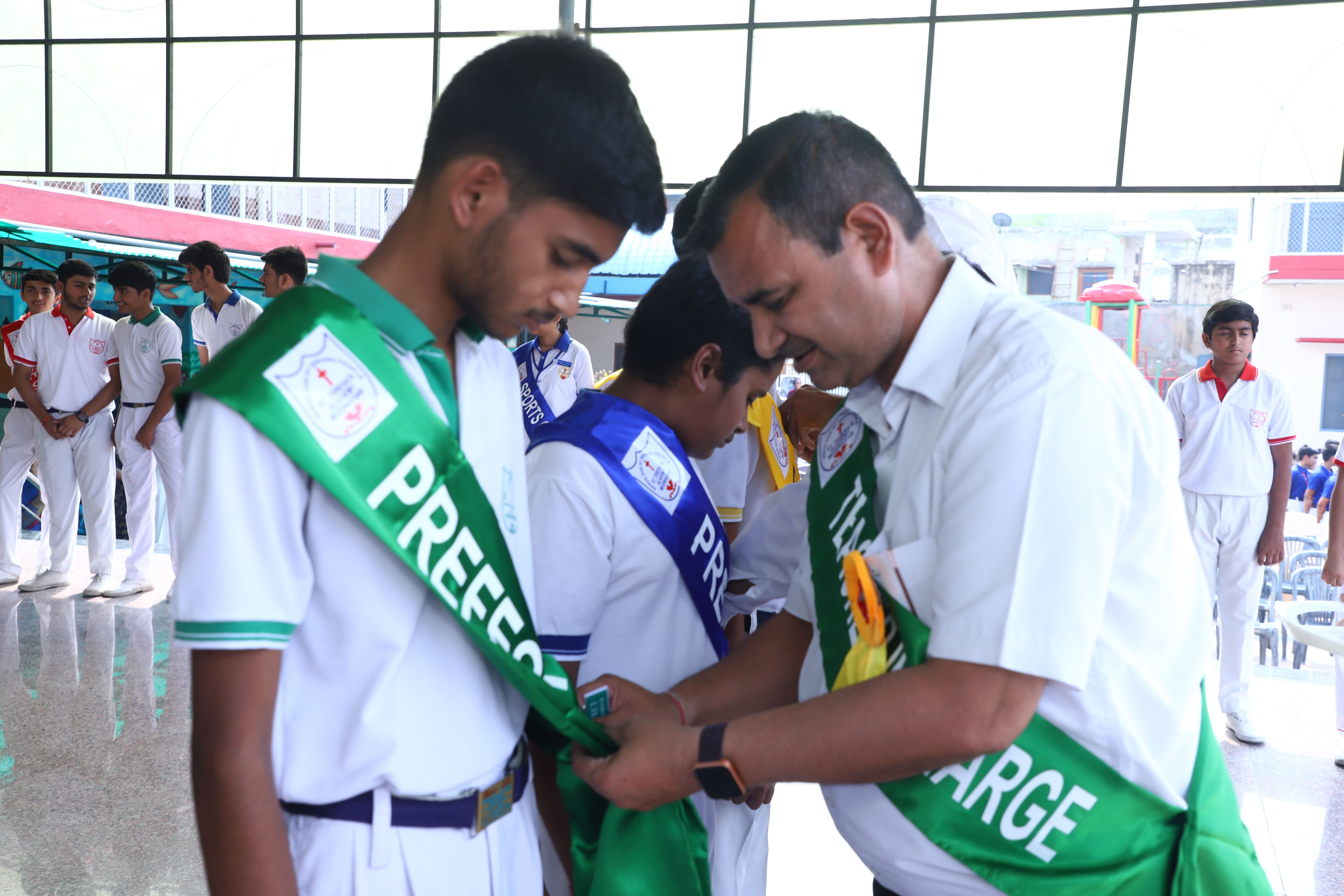 The Investiture Ceremony at St. Teresa's Academy, Modinagar is a prestigious event that marks the official induction of student leaders into their roles of responsibility and service. During the event, newly appointed leaders, including the Head Boy - Abhishek Sirohi, Head Girl - Divyanshi, Asst. Head Boy - Shaurya Dixit, Asst. Head Girl - Bhavya Nagpal, House Captains, and Prefects, receive their badges and sashes, signifying their readiness to lead with integrity and inspire their peers.